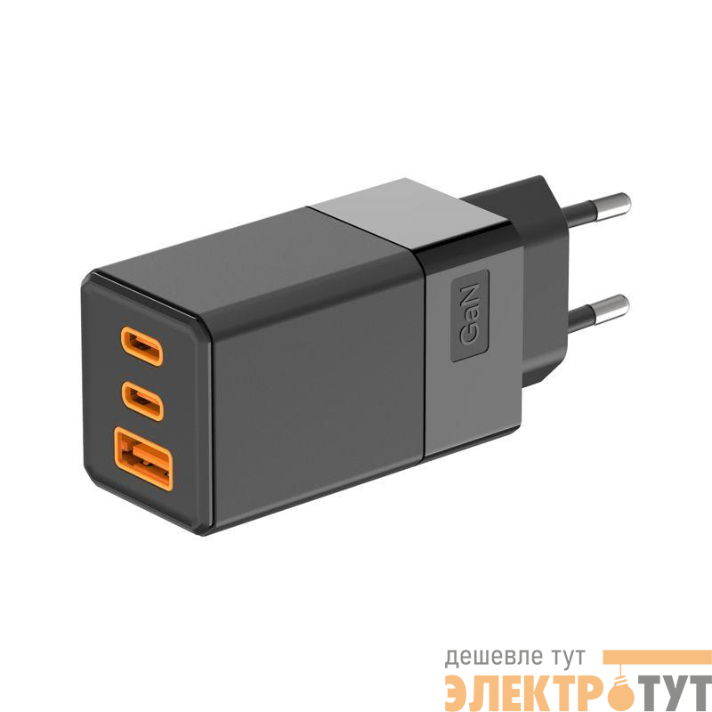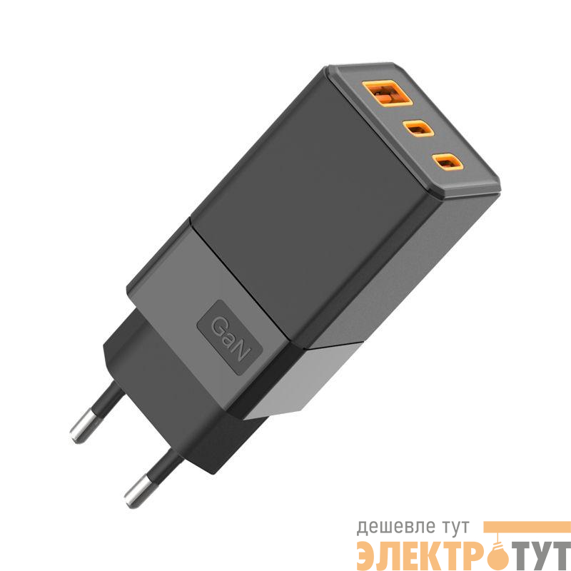 Данная модель оснащена разъемом USB-A и двумя разъемами USB-C. При изготовлении адаптера используется технология Gan, благодаря чему изделие не сильно нагревается, потребляет меньше энергии и заряжает быстрее, чем обычные зарядные устройства.