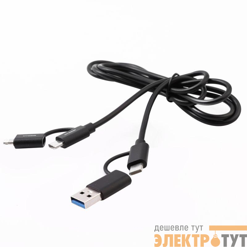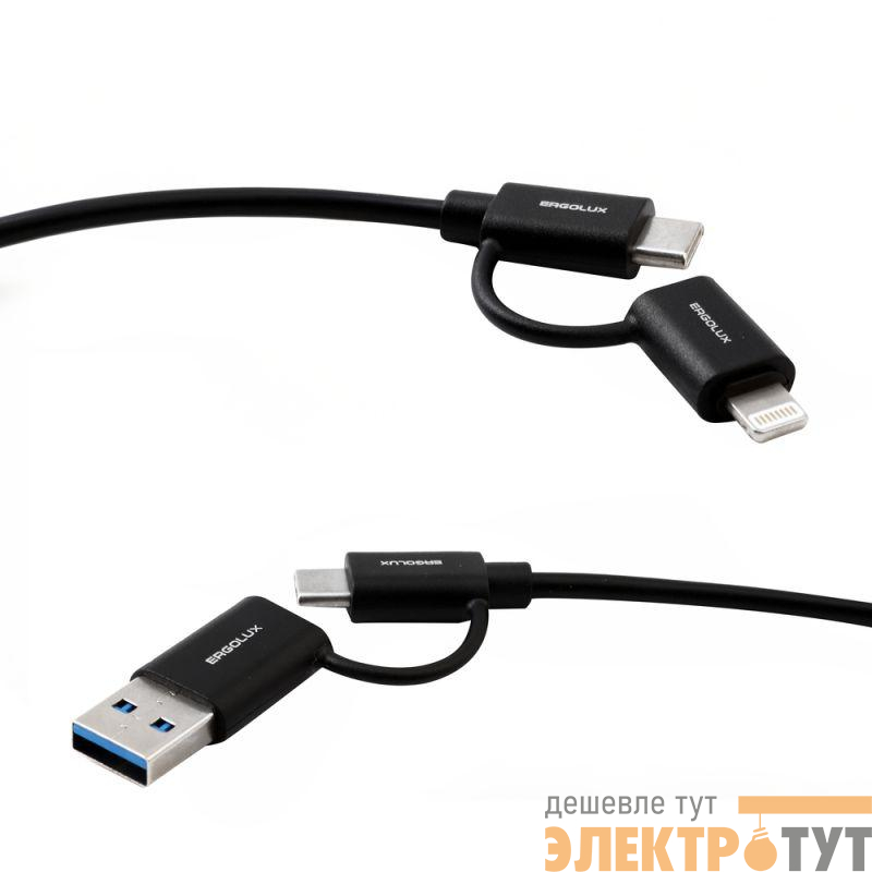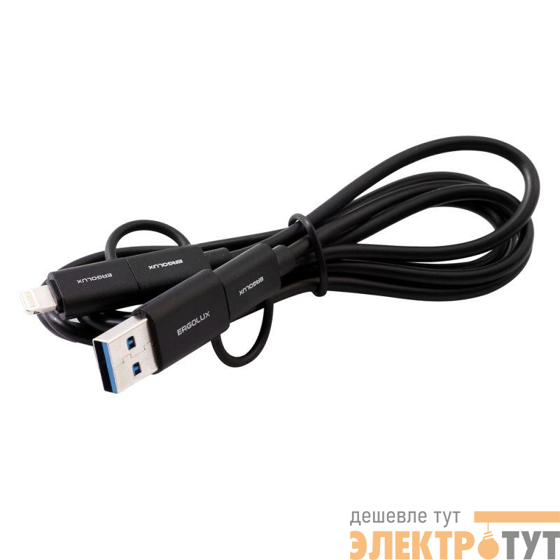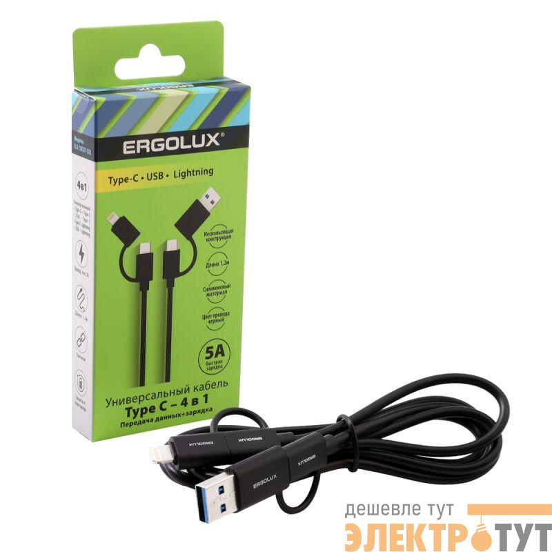 15248 | Кабель 4 в 1 USB/Type C-Type C/Lightning 5А 60Вт 1.2м З+ПД коробка черн. Ergolux