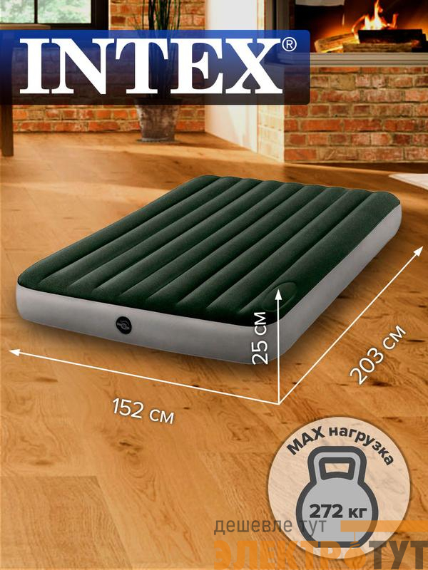 6941057418476 | Матрас надувной 152х203х25см+встр. ножной насос (64763) INTEX