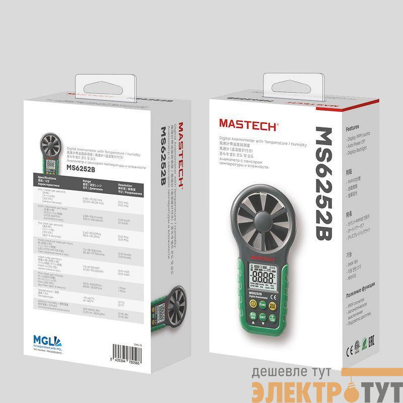 Цифровой анемометр MS6252B MASTECH используется для замера скорости газового/воздушного потока. Данная модель позволяет провести замеры температуры окружающей среды и относительной влажности, определить точку росы.