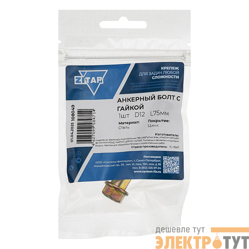 108049 | Болт анкерный с гайкой 12х75 Tech-Krep/Zitar