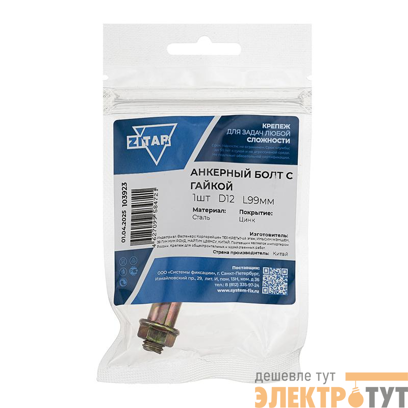 103923 | Болт анкерный с гайкой 12х99 Tech-Krep/Zitar