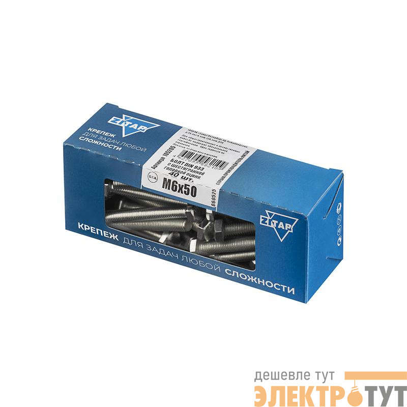 105205 | Болт с шестигранной головкой М6х50 DIN 933 оцинк. (уп.40шт) Tech-Krep/Zitar
