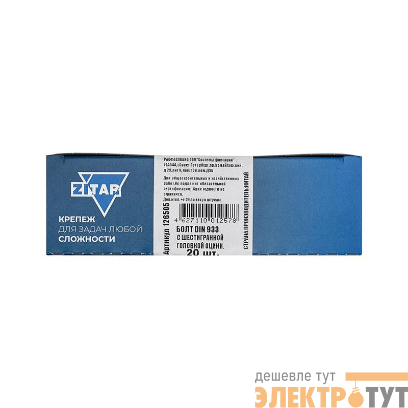 126505 | Болт с шестигранной головкой М8х100 DIN 933 оцинк. (уп.20шт) Tech-Krep/Zitar