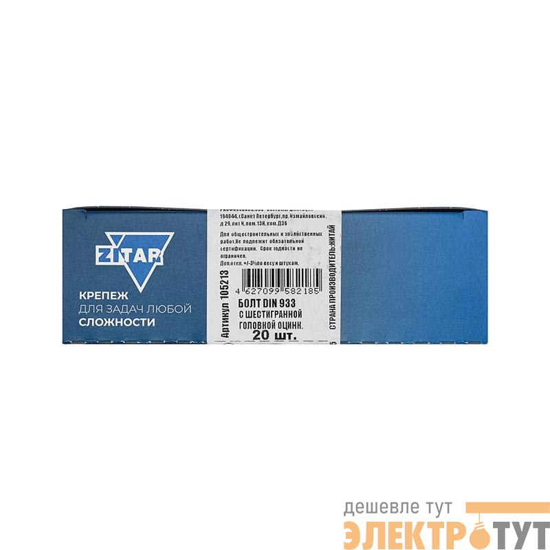 105213 | Болт с шестигранной головкой М8х70 DIN 933 оцинк. (уп.20шт) Tech-Krep/Zitar