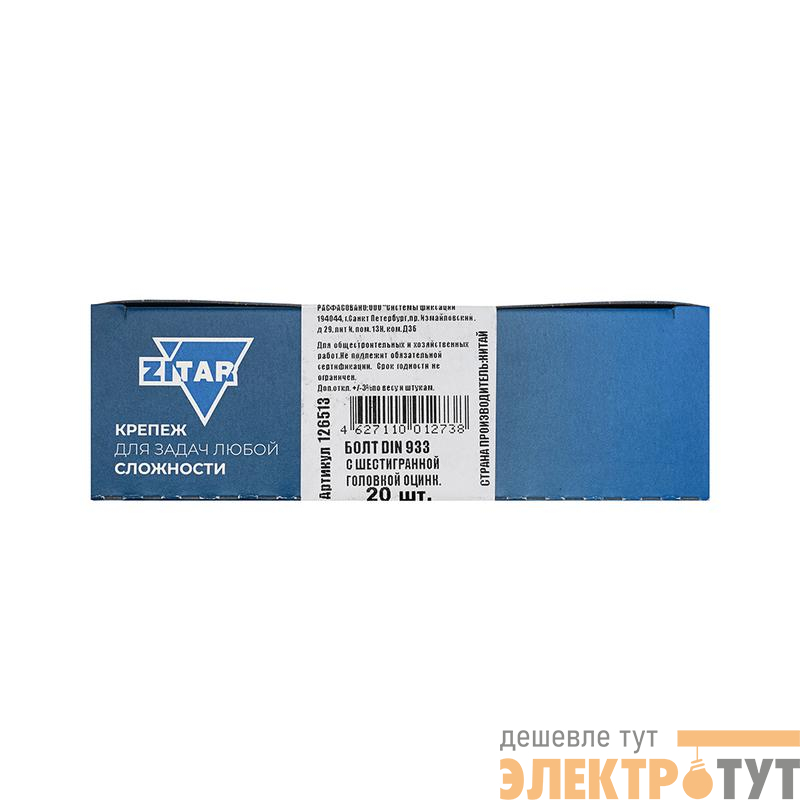 126513 | Болт с шестигранной головкой М8х80 DIN 933 оцинк. (уп.20шт) Tech-Krep/Zitar