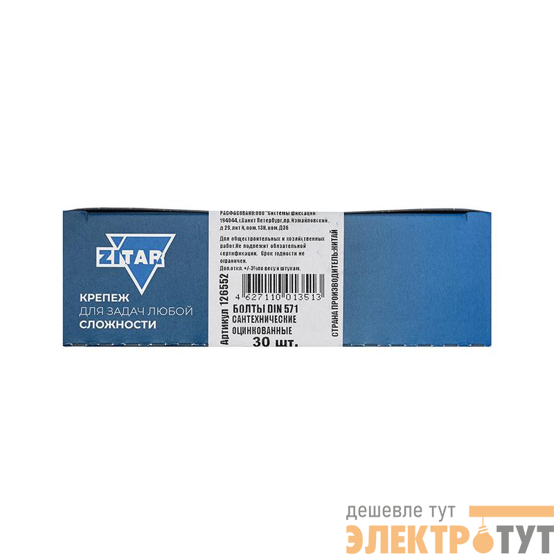 126552 | Болт сантехнический 6х100 DIN 571 оцинк. (уп.30шт) Tech-Krep/Zitar