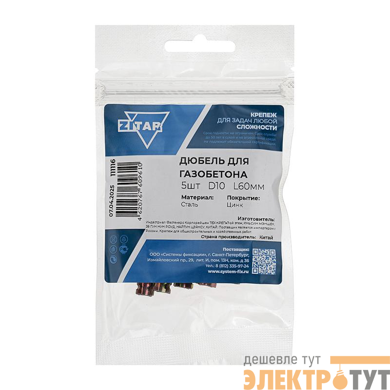 111116 | Дюбель для газобетона 10х60 (уп.5шт) Tech-Krep/Zitar