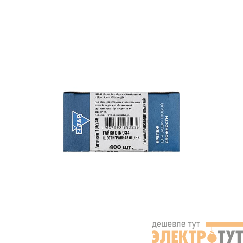 105246 | Гайка шестигранная М5 DIN 934 оцинк. (уп.400шт) Tech-Krep/Zitar