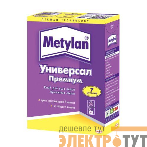 Метилан Универсал премиум - это качественный клей для обоев, который обеспечивает надежное сцепление с различными типами поверхностей. Он идеально подходит для всех видов обоев, включая виниловые, бумажные и текстильные. Продукт доступен в упаковке весом 150 грамм.
