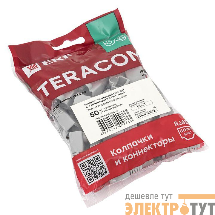 TRC-BT-RJ45-PVC-50 | Колпачок изолирующий TERACOM для коннекторов RJ-45 PVC серый (уп.50шт) EKF