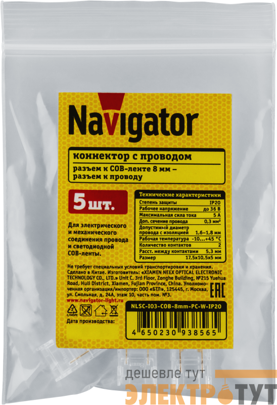 93856 | Коннектор 93 856 NLSC-I03-COB-8mm-PC-W-IP20 NAVIGATOR