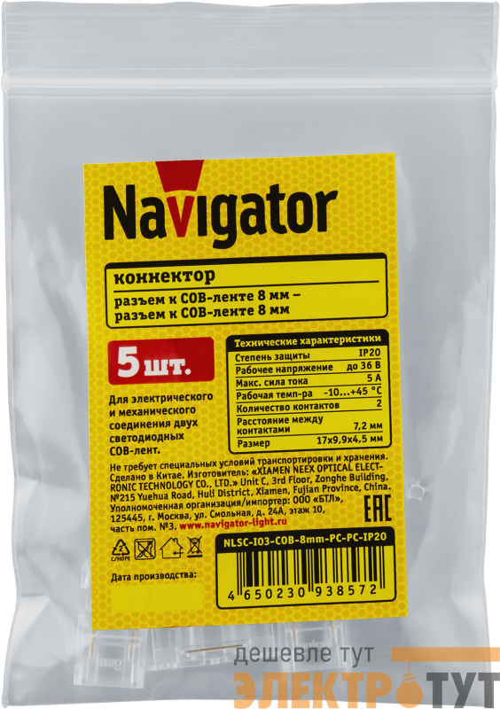 93857 | Коннектор 93 857 NLSC-I03-COB-8mm-PC-PC-IP20 NAVIGATOR