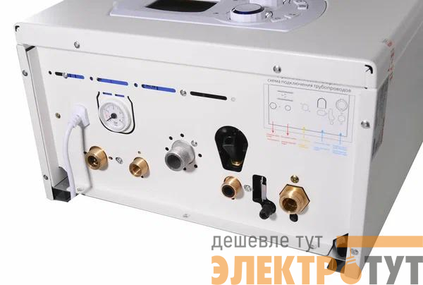 В конструкции котла предусмотрены два независимых теплообменника: один медный первичный и второй теплообменник из нержавеющей стали. Класс защиты IPX4 позволяет устанавливать котел в сырых помещениях.