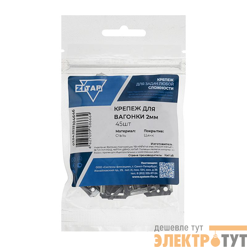 104646 | Крепеж для вагонки 2мм (уп.45шт) Tech-Krep/Zitar