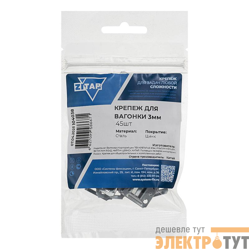 104038 | Крепеж для вагонки 3мм (уп.45шт) Tech-Krep/Zitar