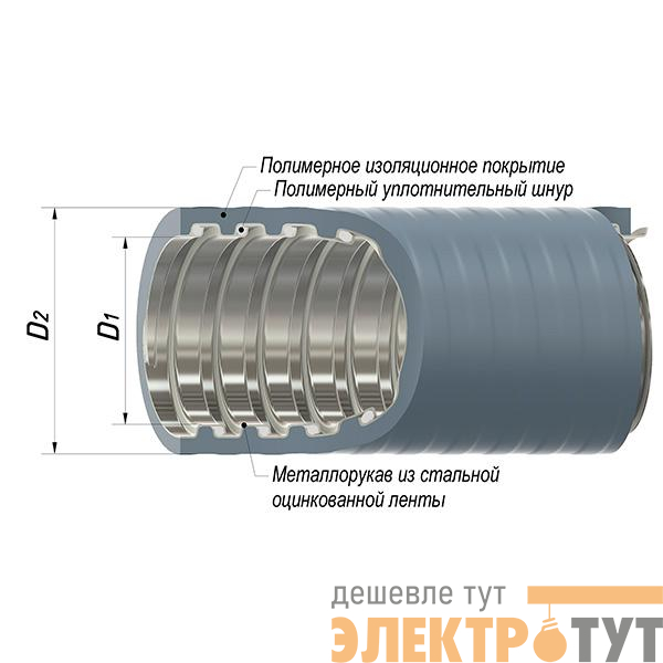 zeta42852 | Металлорукав в ПВХ изоляции МПГ НГ толстостенный 20 с протяжкой сер. (уп.50м) ГОФРОМАТИК