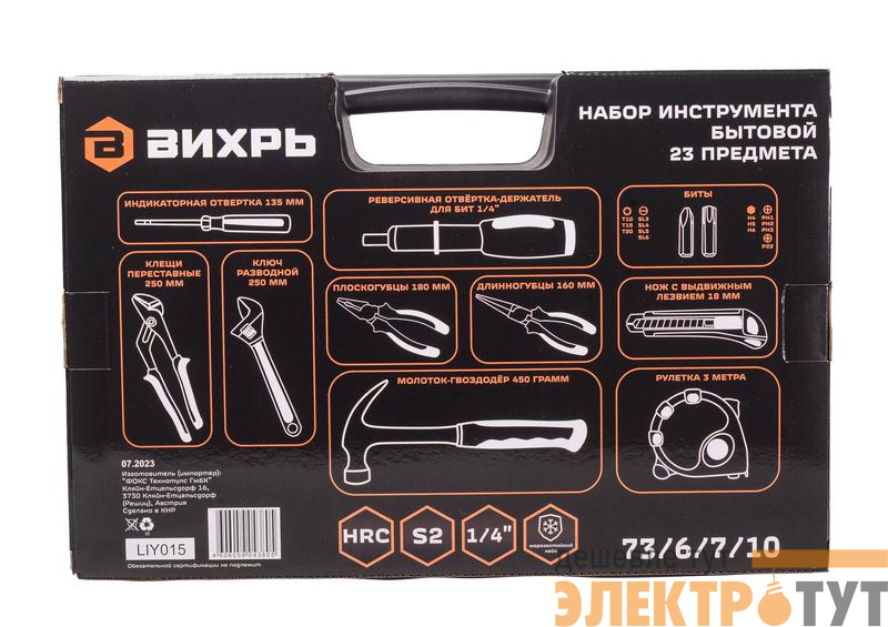 73/6/7/10 | Набор инструмента бытовой в кейсе 23 предмета Вихрь
