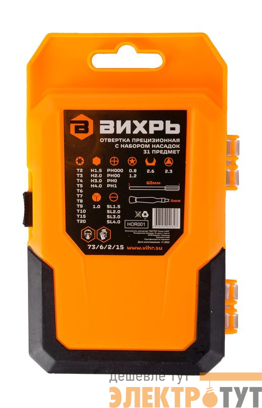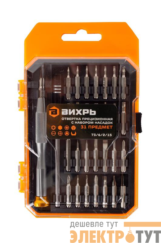 73/6/2/15 | Отвертка прецизионная с набором насадок 31 предмет в кейсе Вихрь