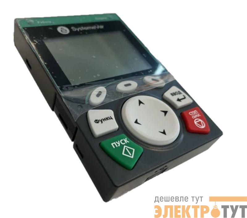 LCD панель управления для преобразователей частоты серии SystemeVar, типа STV900H (не входит в комплект поставки STV900***N4H (3Ф 400В) и STV900***Y6H (3Ф 690В). Панель позволяет контролировать запуск / останов ПЧ, параметрировать преобразователь и выводить данные состояния. Оснащена часами реального времени (для их автономной работы требуется элемент питания CR2032, который не входит в комплект поставки и, при необходимости, заказывается отдельно). Поддерживает копирование параметров. Чтобы закрепить панель оператора на дверце шкафа можно использовать винты M3x10 (2 шт., входят в комплект поставки) или дополнительный кронштейн (референс для заказа: SEOP-1102), а также стандартный экранированный LAN-кабель (Ethernet патч-корд, c разъёмом RJ-45), рекомендованная длина ? 3м. Встроенная функция копирования параметров (панель оператора поддерживает 3 набора параметров ПЧ). Габаритные размеры (ДхШхВ): 109,3 х 71,3 х 19,3(28,5) мм.