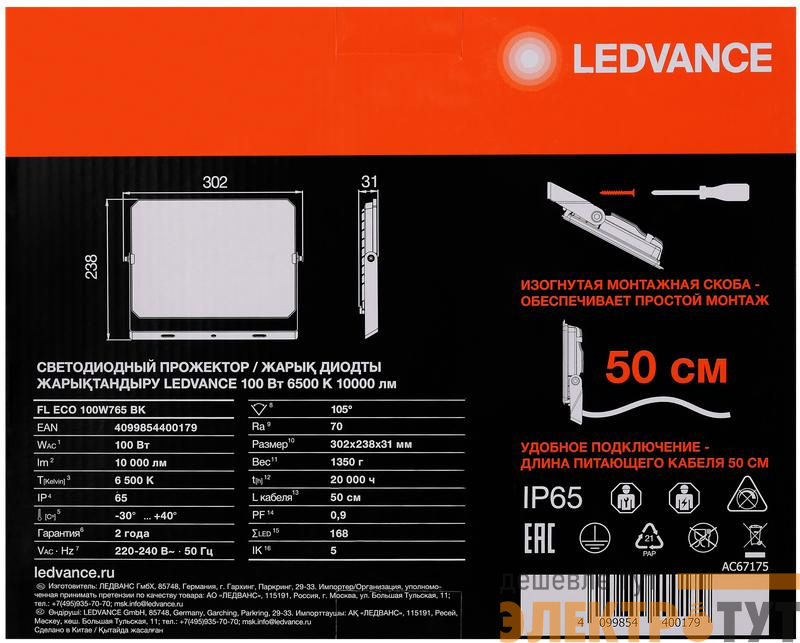 Покупая светильники Flood Light ECO LEDVANCE, вы получаете: