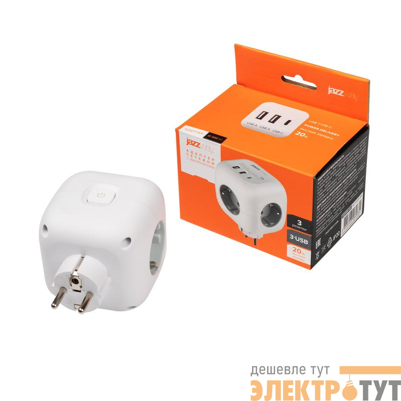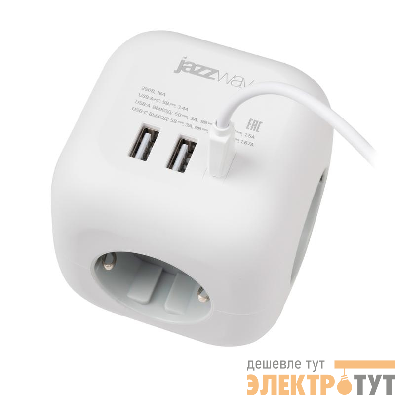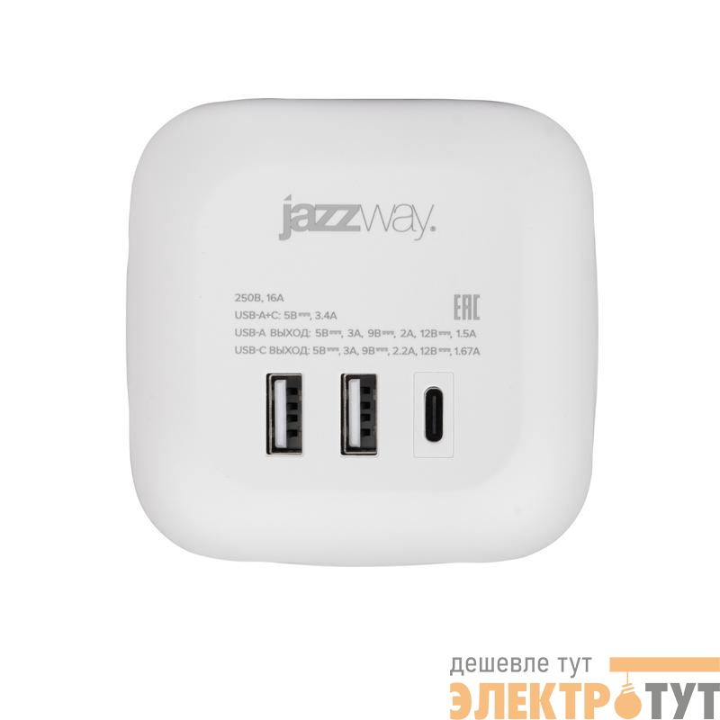 5060630 | Разветвитель 3-м с заземл. 2хUSB type-A + 1х type-C AC-3UGS-wh с выкл. бел. JazzWay
