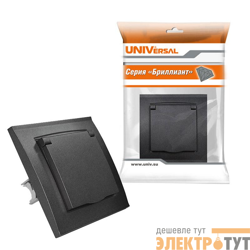 7947649-Gr | Розетка 1-м СП Бриллиант 16А IP20 с заземл. с крышкой в сборе графит Universal