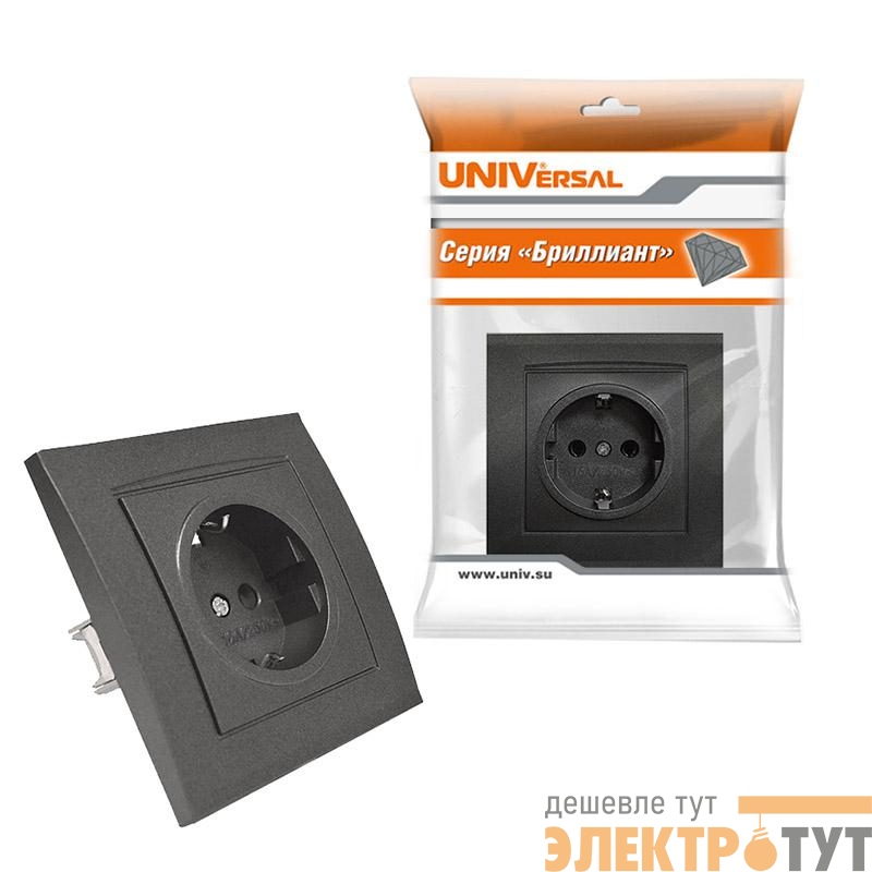 7947625-Gr | Розетка 1-м СП Бриллиант 16А IP20 с заземл. в сборе графит Universal