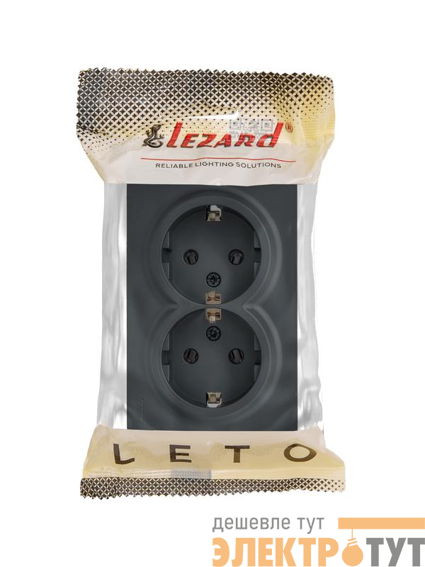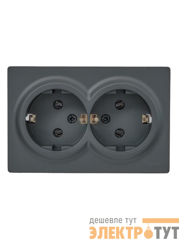 752-3400-127B | Розетка 2-мест. с заземл. LETO закрытый корпус ПБТ графит LEZARD