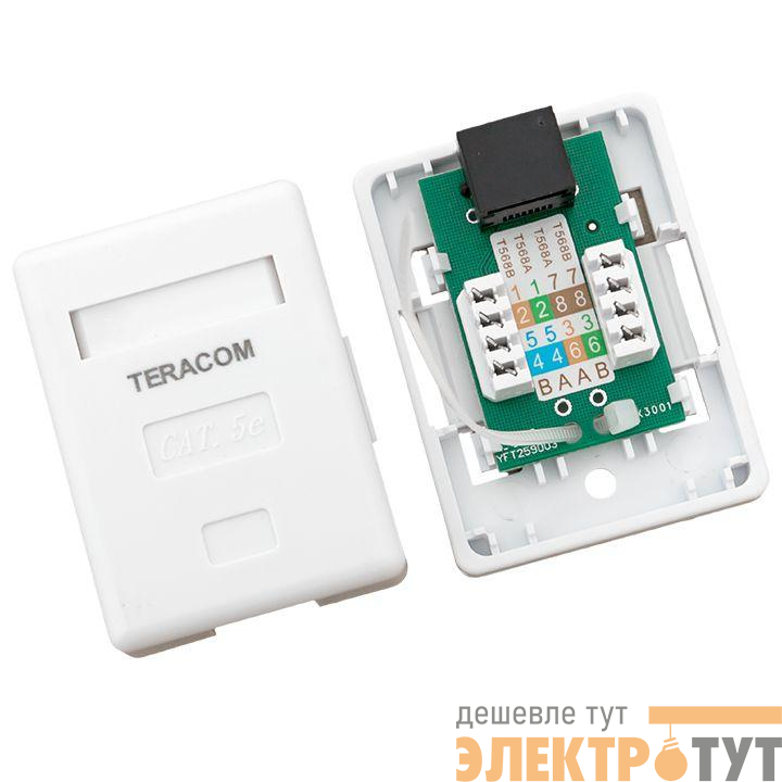 TRC-WBOX-1RJ45-5EUTP-WH | Розетка настенная TERACOM кат.5E неэкранированная 1 порт RJ-45 Dual IDC бел. EKF