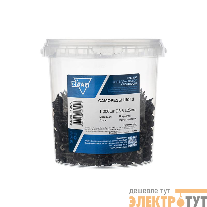 100077 | Саморез ШСГД 3.8х25 (уп.1000шт) Tech-Krep/Zitar