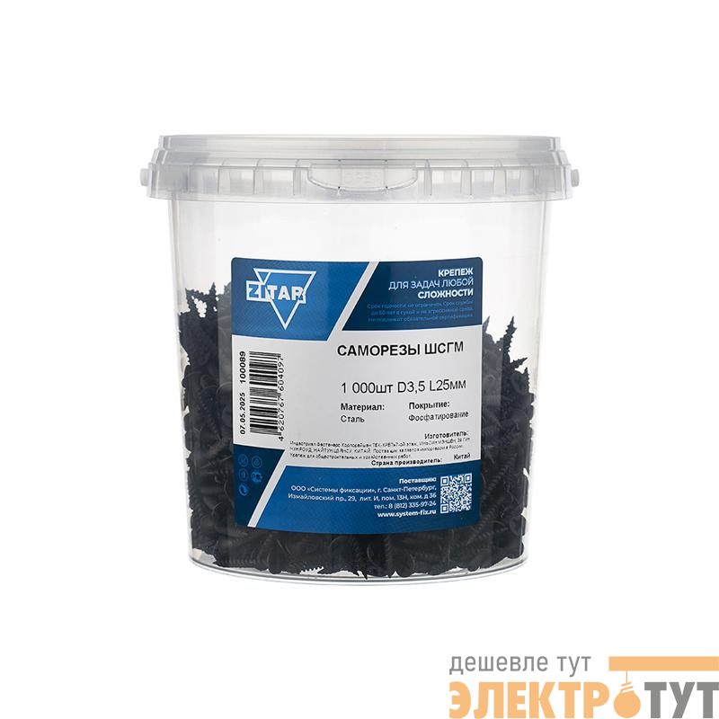 100089 | Саморез ШСГМ 3.5х25 (уп.1000шт) Tech-Krep/Zitar