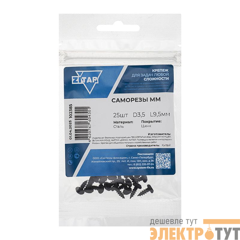 102385 | Саморез ШСММ 3.5х9.5 (уп.25шт) Tech-Krep/Zitar