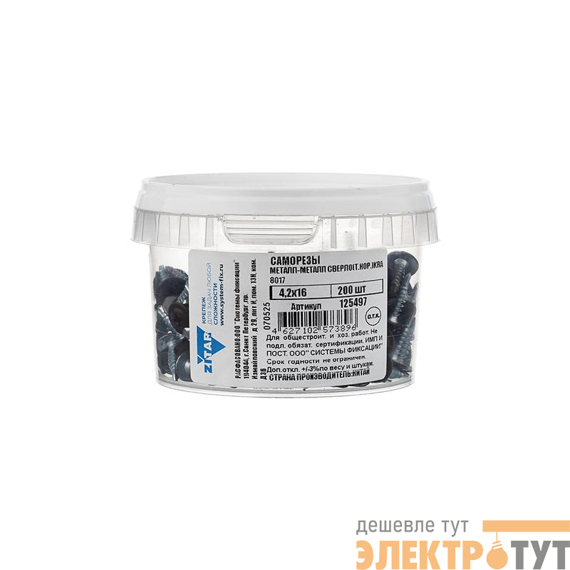 125497 | Саморез ШСММ сверло 4.2х16 темн./корич. KP RAL 8017 (уп.200шт) Tech-Krep/Zitar
