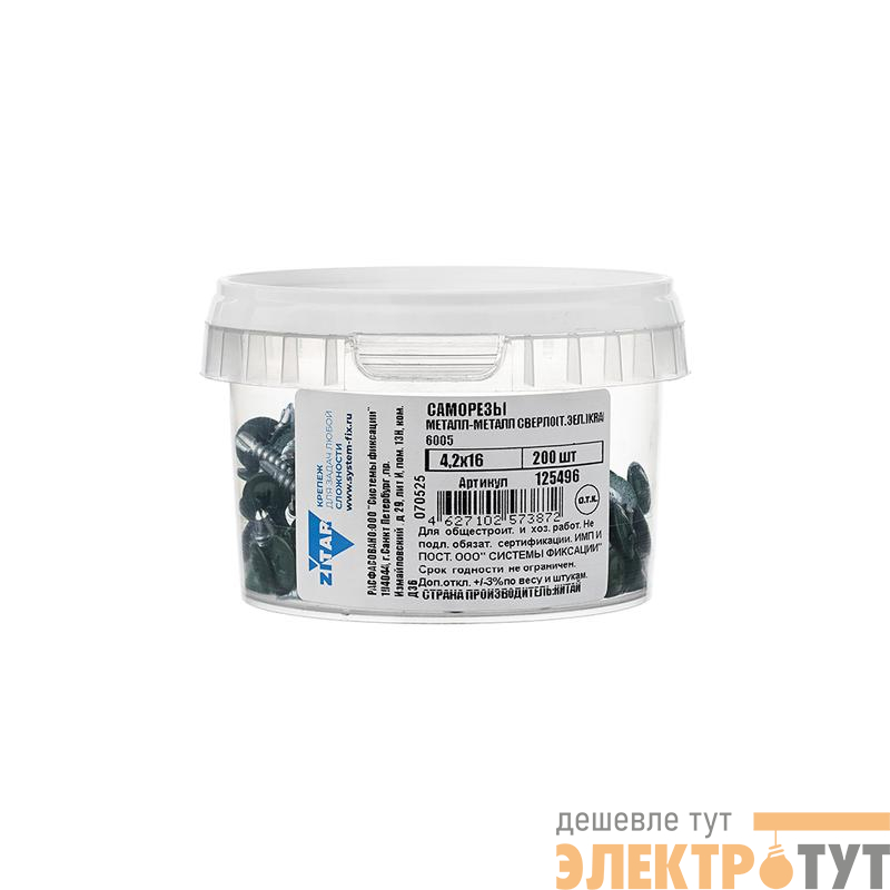 125496 | Саморез ШСММ сверло 4.2х16 темн./зел. KP RAL 6005 (уп.200шт) Tech-Krep/Zitar
