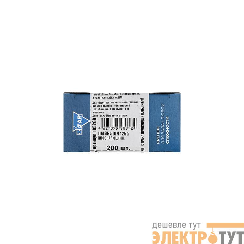 105260 | Шайба плоская М8 DIN 125а оцинк. (уп.200шт) Tech-Krep/Zitar