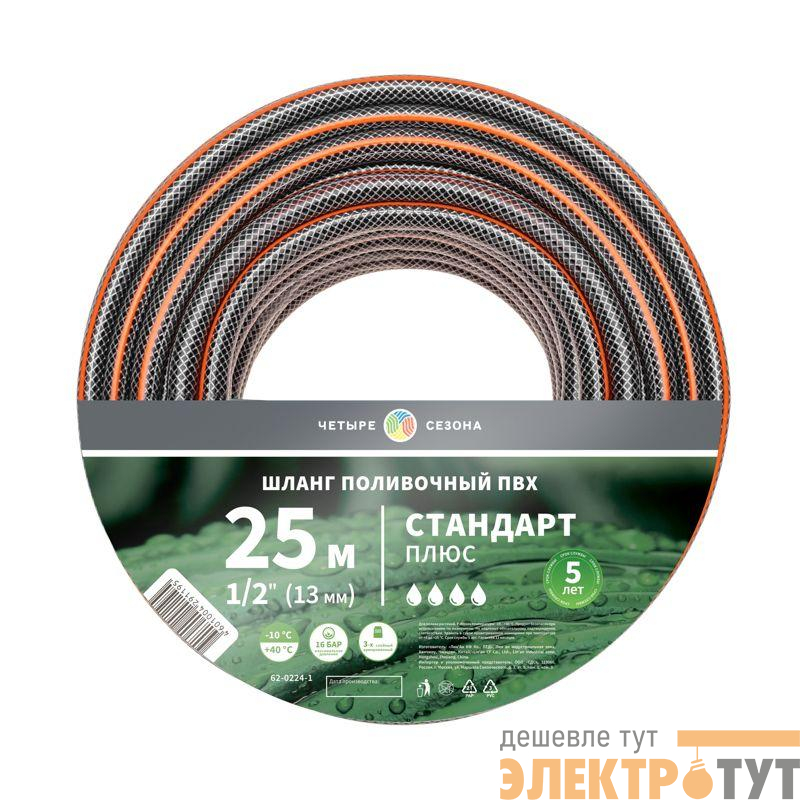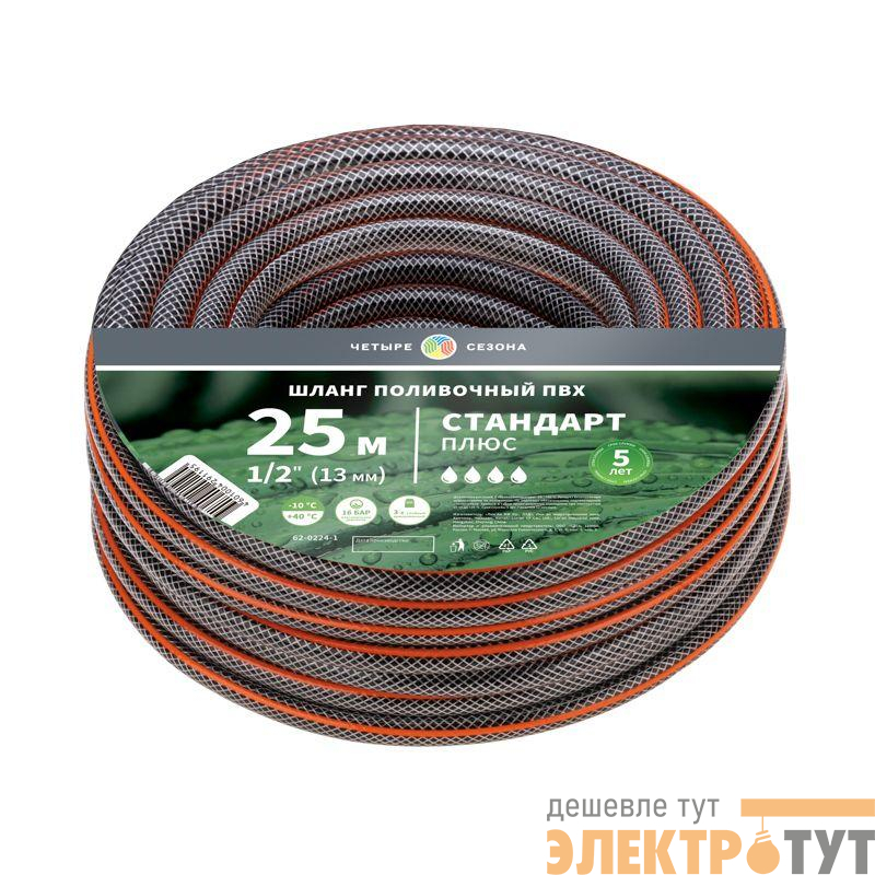 62-0224-1 | Шланг поливочный ПВХ 3-х слойный армированный 1/2дюйм 25м Стандарт Плюс ЧЕТЫРЕ СЕЗОНА