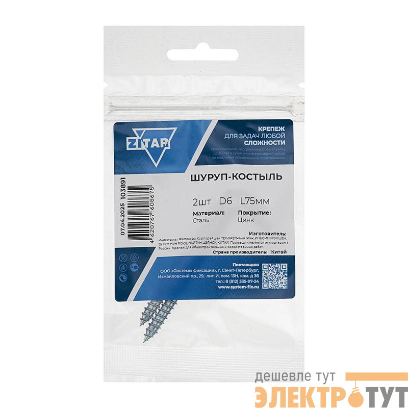 103891 | Шуруп-костыль 6.0х75 (уп.2шт) Tech-Krep/Zitar