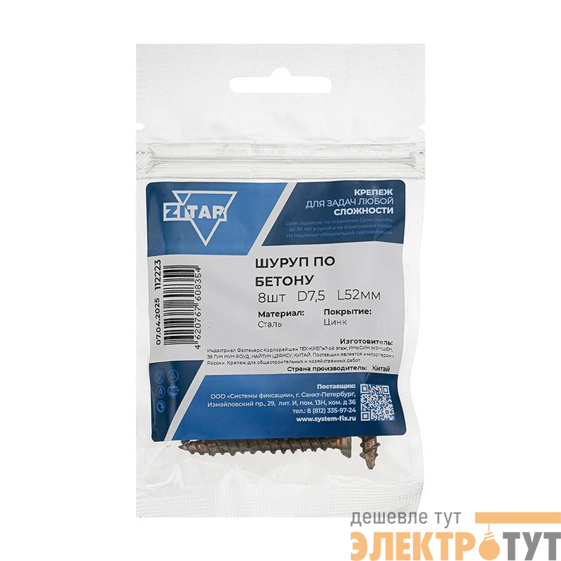 112223 | Шуруп по бетону 7.5х52 (уп.8шт) Tech-Krep/Zitar