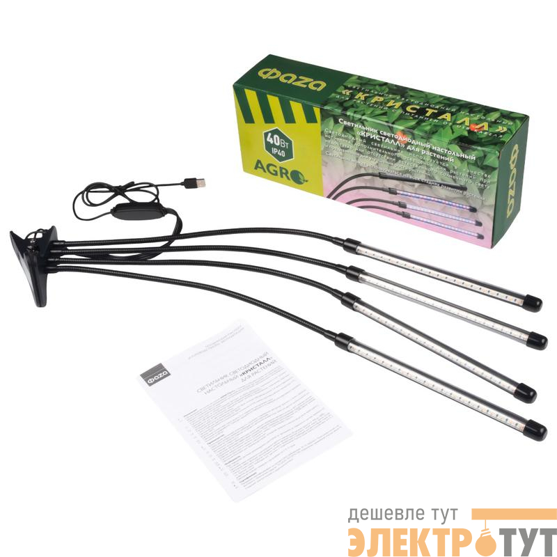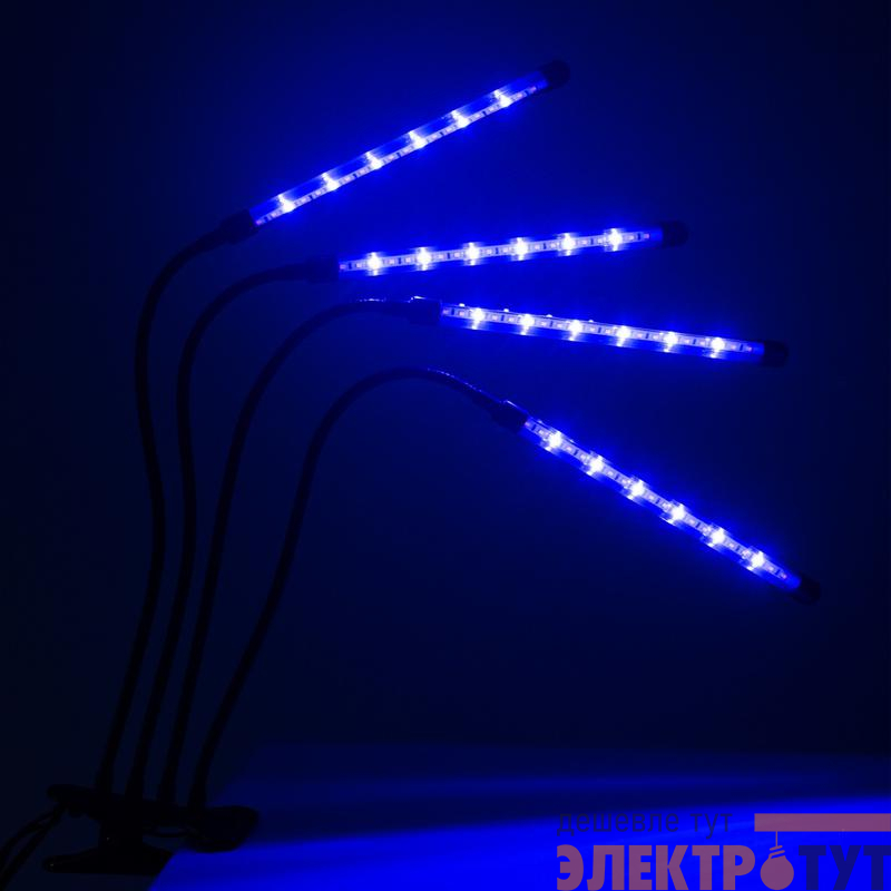 5068810 | Светильник светодиодный "КРИСТАЛЛ" CTL2-USB-bl Agro 4х10Вт IP40 для растений спектр 4 плафона на прищепке пульт на шнуре красн./син. ФАZА