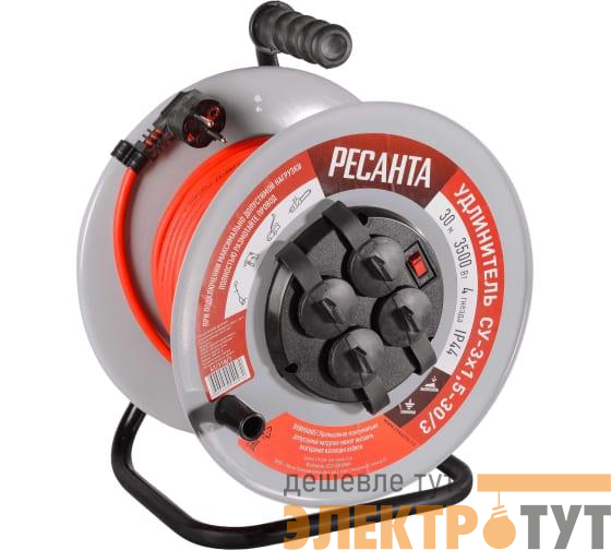 61/118/7 | Удлинитель на метал. катушке 4х30м IP44 СУ-3х1.5-30/3 с выкл. Ресанта