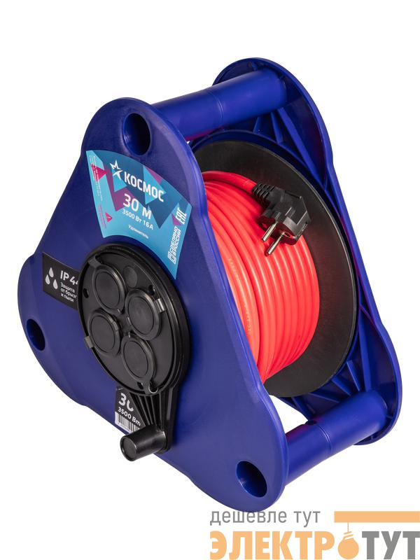 YKTKsm30m-4g(2.5)IP | Удлинитель на треугольной катушке 4х30м 16А 3500Вт IP44 ПВС 2х2.5 УКП КОСМОС