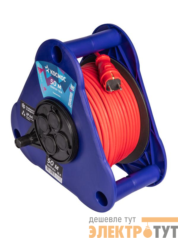 YKTK50m-4g(2.5)KG-IP | Удлинитель на треугольной катушке 4х50м 16А 3500Вт IP44 КГ 2х2.5 УКП КОСМОС