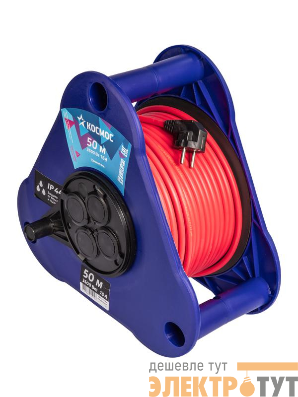 YKTKsm50m-4g(2.5)IP | Удлинитель на треугольной катушке 4х50м 16А 3500Вт IP44 ПВС 2х2.5 УКП КОСМОС