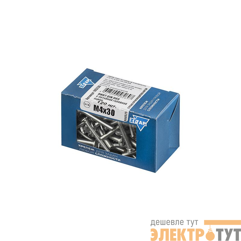 105236 | Винт с потайной головкой М4х30 DIN 965 оцинк. (уп.120шт) Tech-Krep/Zitar