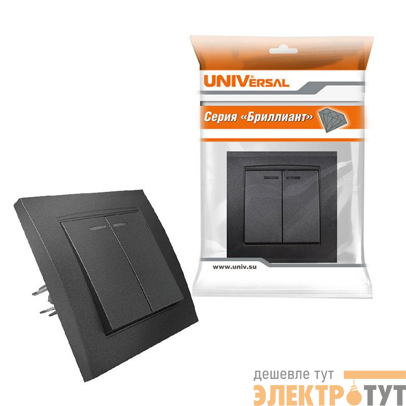 7947410-Gr | Выключатель 2-кл. СП Бриллиант 10А IP20 с подсветкой в сборе графит Universal
