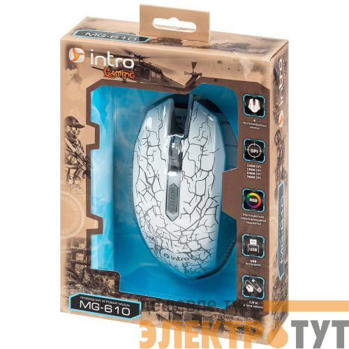 Б0056136 | Мышь MG610 игровая проводная 1200-3600dpi бел. Intro