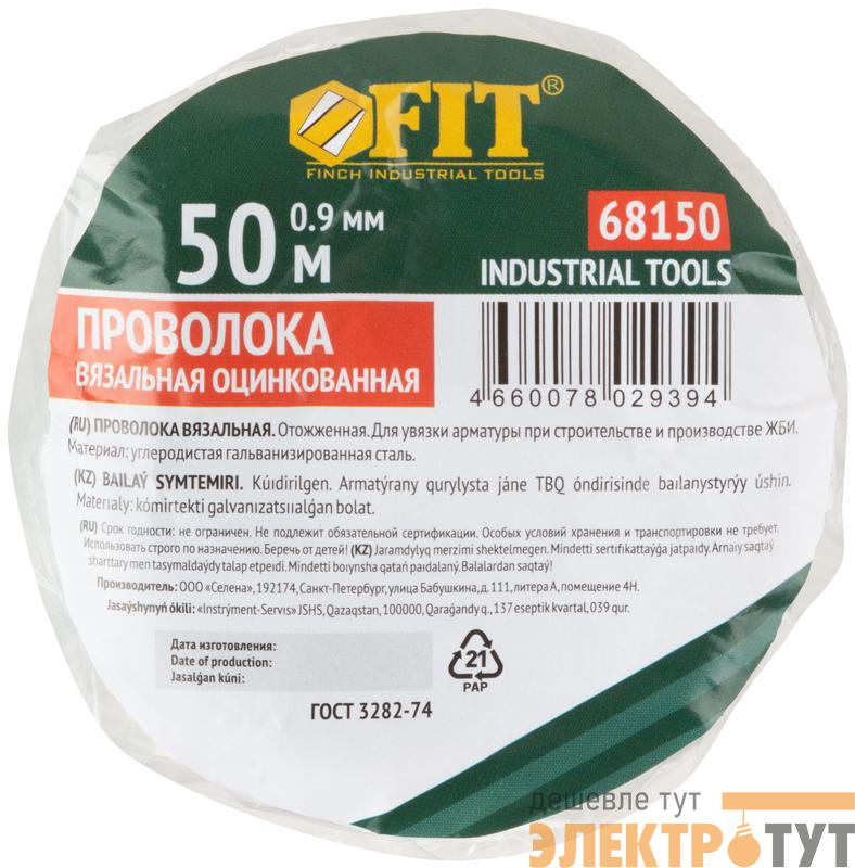 68150 | Проволока вязальная 0.9ммх50м оцинк. FIT